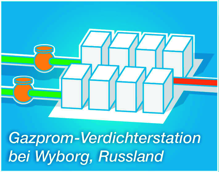 At the Russian landfall facility, in Portovaya Bay near Vyborg, the powerful Portovaya Compressor Station builds the pressure needed to transport gas through Nord Stream. It is managed and operated by Gazprom. The station enables the secure transmission of gas via Nord Stream all the way to Germany without interim compression.