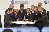 - Лидеры стран-участниц проекта торжественно открыли газовый вентиль в финальной точке газопровода в городе Любмине на балтийском побережье Германии